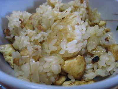 炒り豆腐とゴボウの炊きこみご飯です。